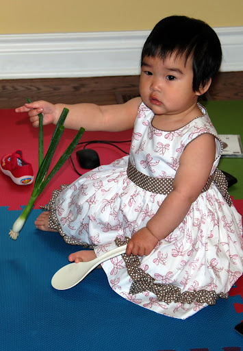Grace阿姨的女儿满月了,小壁虎昨天赶去参加小宝宝的满月party. 这可是小壁虎平生第一次参加别人的满月聚会,当然要惊艳登场才行。头天晚上壁虎妈妈就开始琢磨她的行头。把7,8件衣服铺了一地,最后决定穿嫩绿色的点点上衣配牛仔裤。走的是活泼帅气路线。第二天一早,妈妈就迫不及待的把孩子抓过来试衣服。小牛仔裤穿上,扣上扣子。不错嘛,腰也不嘞的慌。 长度也好。看来这段时间活动的不错,把肚子减下来了。小壁虎似乎也很满意她的新裤子,决定坐起来好好看看。于是同平常一样,劈腿,后退,起。。。 第一次,没起来,再试,还起不来,再试,还不行。立刻急了,开始哇哇大叫。壁虎妈妈似乎立刻明白了小时候上体育课为什么不让穿牛仔裤了,这腿分不开瓣儿啊。为了不影响体操运动员今天的发挥,只好把裤子褪下来了。