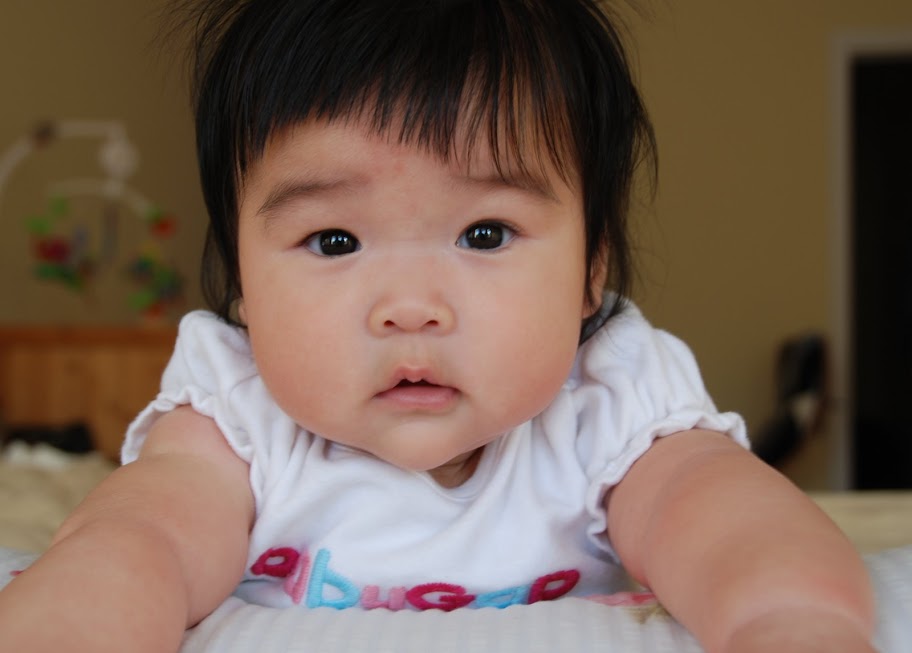 月子里: 能吃能睡,除了3周有些Colic, 活泼可爱。3周时眼睛就开始咕噜噜的转。壁虎妈妈苦 于奶不够,小壁虎也不爱吃瓶瓶,但经过双方艰苦卓绝的努力,终于在满月后达到供需平衡。