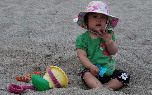 最后壁虎一家满载而归,路上还去了附近的Beach野餐和玩沙子。小壁虎不出所料的抓了把沙子进嘴。吃了樱桃核怕不消化,再吃点沙子帮着磨磨。彻底变小母鸡了