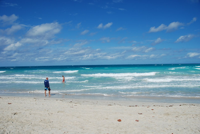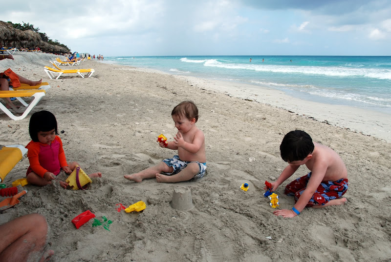 小壁虎和平常一样6点半就起来折腾。妈妈实在很困,就让爸爸给她放巧虎看。磨蹭到7点才起床。2月份穿夏天的衣服真好啊。给孩子收拾整齐就出去吃饭。屋外满眼的花团锦簇,清扫庭院的清洁工非常友善的给过往女士送花。餐厅全是自助餐,早餐很丰富,只是水果的品种比较单一,只有木瓜,菠萝,西柚 和番石榴,除了菠萝,小壁虎对别的水果都不太感冒。但是牛奶几乎是全脂的,味道也很好。早饭过后爸妈就给小壁虎穿好了游泳衣,带着挖沙工具,让老同志们带到沙滩去玩。爸妈去听旅行社的代表介绍旅游活动。接下来订了星期一的出海,包括潜水看珊瑚,下午的海豚表演,星期三首都哈瓦那一日游。又预约了餐厅3次的晚餐。(除了自助餐,每人还可以到度假村里的三家餐厅吃点菜的晚餐一次,包括日本,古巴和地中海餐)。把该花的钱都花了。这古巴外汇管制不说,还和当年中国一样,外国人兑换的是外汇券,汇率就不说了,比加元高,而且出了这岛基本就是废纸一张,所以大家都是用多少换多少。信用卡除了American Express, 别的都可以用,但要付11%的手续费。同在欧洲旅游一样,每天应该给打扫房间的小费。一块钱吧。