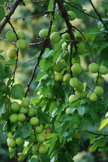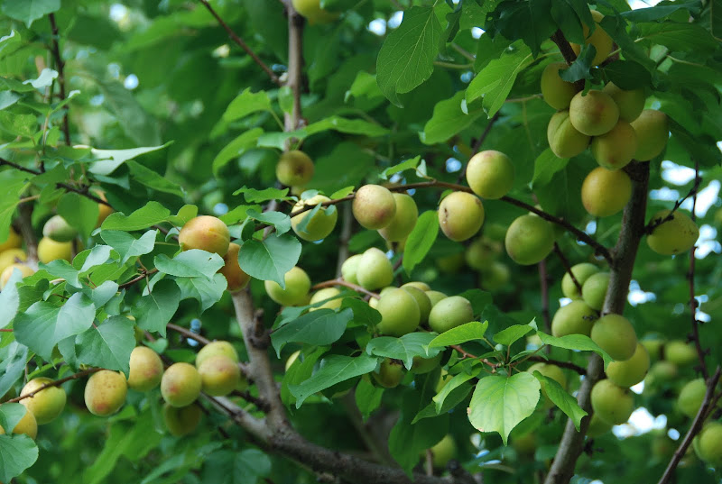 买房子的时候就知道后院有一棵梨树,两棵杏树。过了三个夏天,前年,杏树颗粒无收,去年刚开花没多久就一夜风雨来,花落知多少,最后收获寥寥,但是很大很甜的几个杏。让我们今年充满了希望。今年热的早,而且日照充足,看着满树的杏花终于变成了满树的果实,于是开始天天掰着手指头数日子等着吃杏。