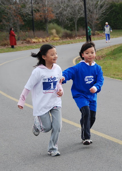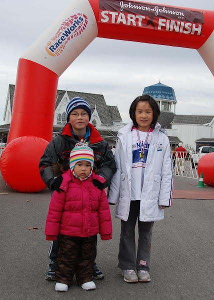右转弯进入高尔夫球场,400米的driveway我就当跑track了。刚进大门,看见胖妞他姨父手里抱着一岁半的小表弟,带着今天来参加kids 1KM跑的两小家伙们对我狂挥手,几个人本想跟着我跑,可是好像有些跟不上。呵呵呵!