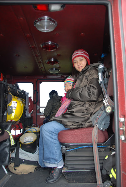 有意思的是起点停着一辆消防车,跑步一开始,就开始拉鸣助威,真有气氛啊。等壁虎爸出发了,小壁虎还如愿以偿爬到消防车里坐了一会儿。