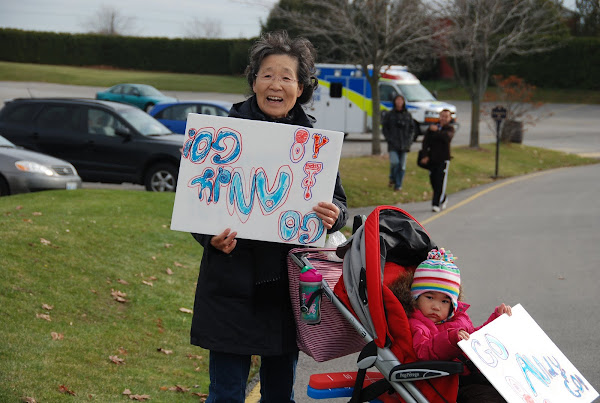 最近壁虎妈疏于笔耕,但是壁虎爸第一次参加半马比赛归来,说什么也要总结一下。话说壁虎爸三项赛后的另一个目标就是参加半程马拉松21.1公里的比赛。每天晚上当壁虎妈和小壁虎见周公了,就出门苦练跑步。据说还是有训练计划的。这不,报名了 Angus Glen 的半程马拉松比赛,日期就订在11月7日。作为资深啦啦队队长,壁虎妈是呼朋唤友,早早网络了一群朋友来助威,而且还鼓动一群小孩子报名参加同一天举行的1公里少儿比赛,这样确保亲友团不会临阵脱逃。